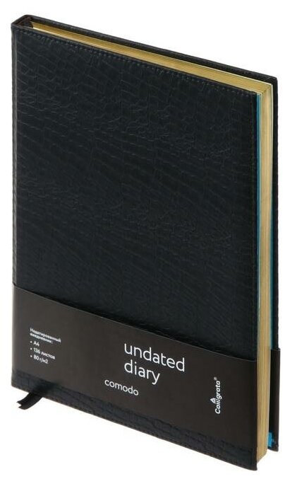 Ежедневник недатированный Comodo A4, 136 листов в клетку, кожзам, под матовую крокодиловую кожу, 2 ляссе, перфорированные уголки информация: