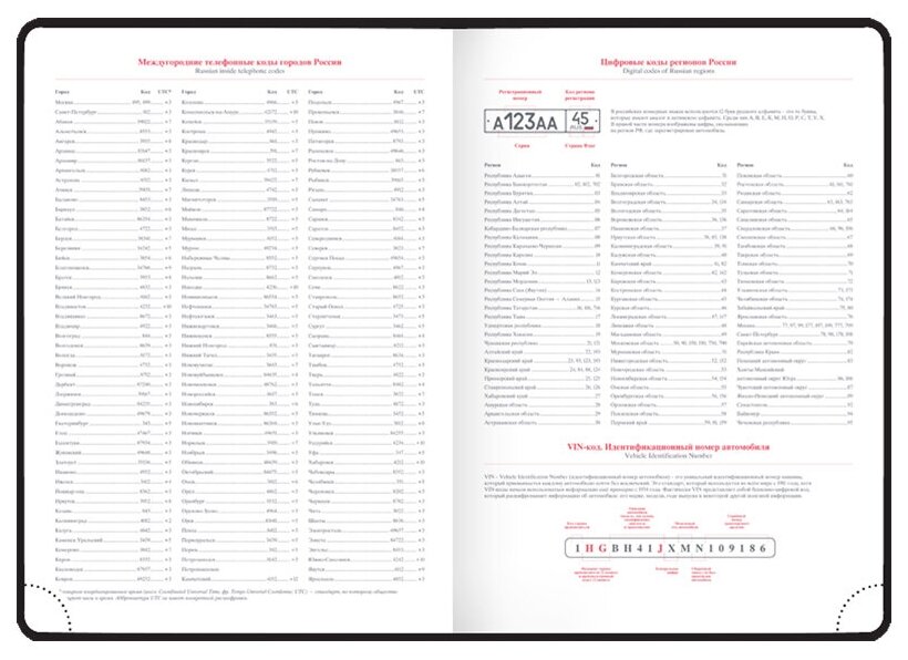| Особенности | закругленные углы / ляссе / перфорация уголков / прошивка по периметру обложки / справочная информация |