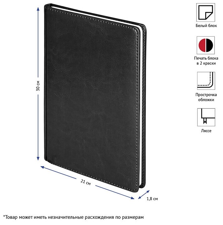 Ежедневник недатированный OfficeSpace "Nebraska", A4, 136 л., кожзам, черный информация: