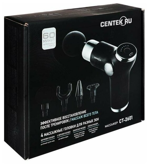 Массажер для тела Centek CT-2601, перкуссионный, 4 насадки, 6 режимов, 1800-3200 об/мин