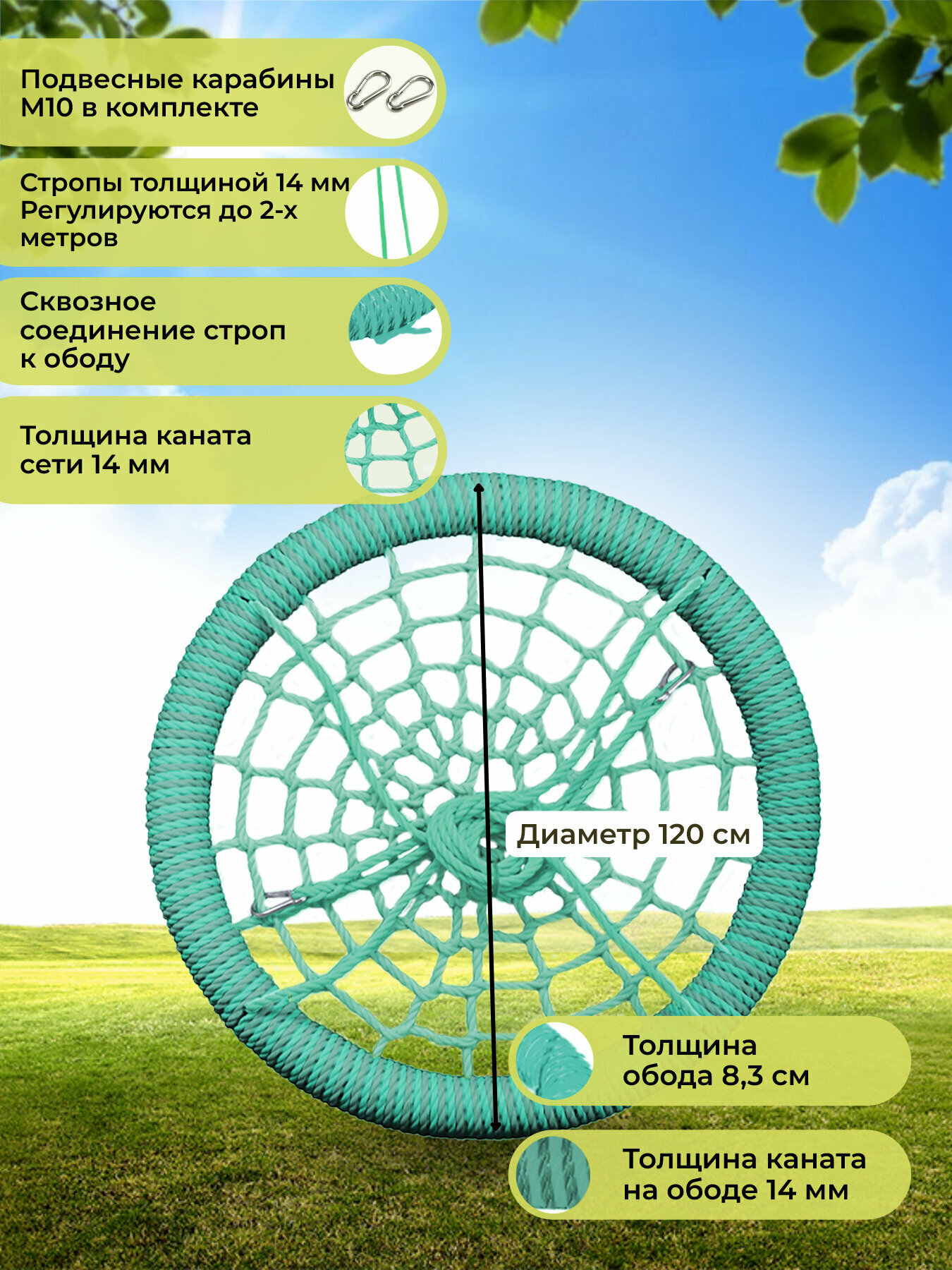 Детские Однотонные качели гнездо PREMIUM диаметр 120 см цвет Бирюзовый толщина каната 14 мм информация: