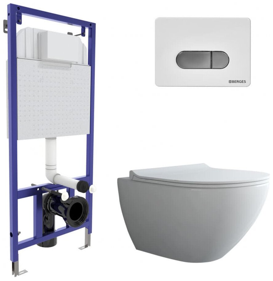 10 цен на Комплект унитаза с инсталляцией Berges Wasserhaus Novum Rimless 043270 с сиденьем Микролифт и Белой Хром глянец клавишей смыва