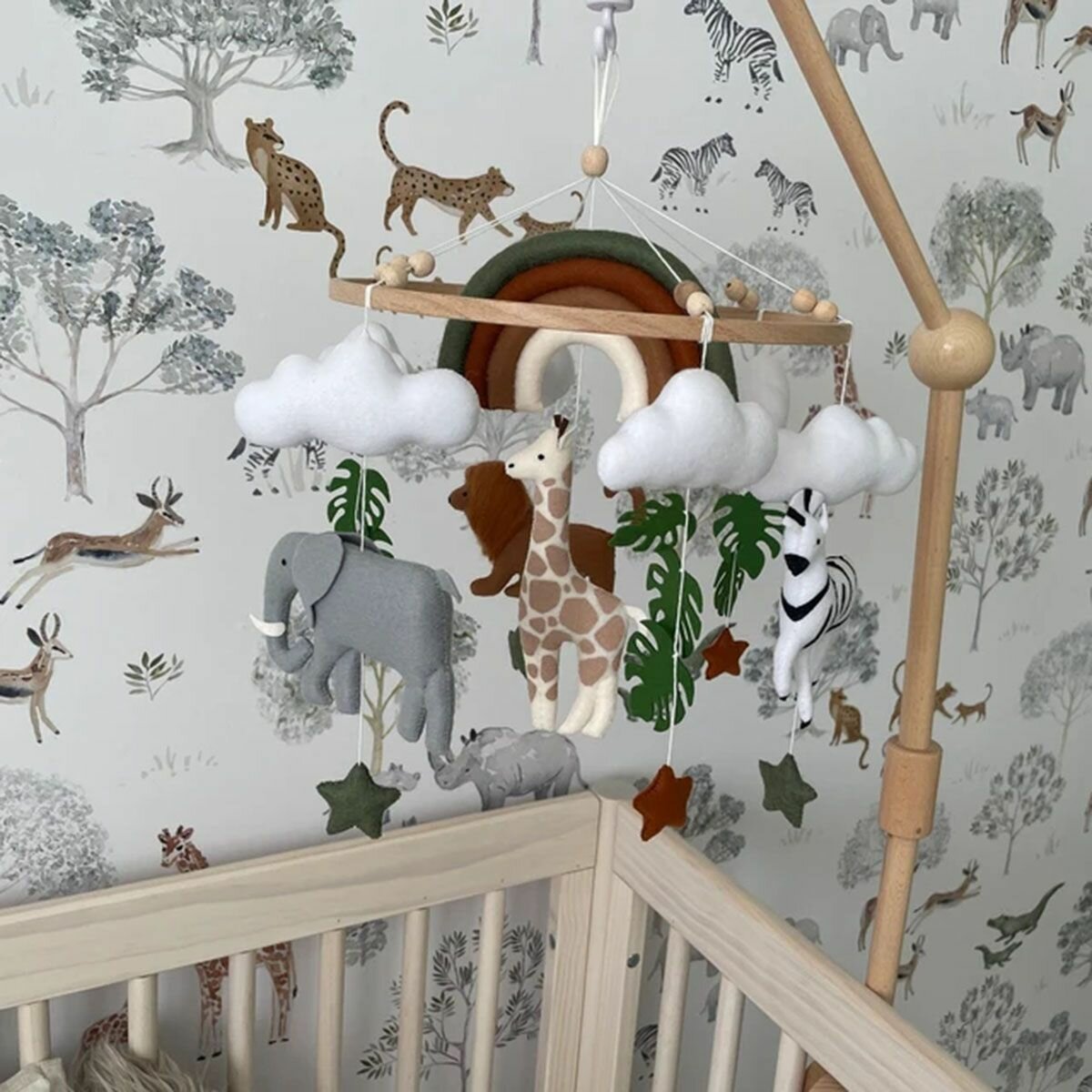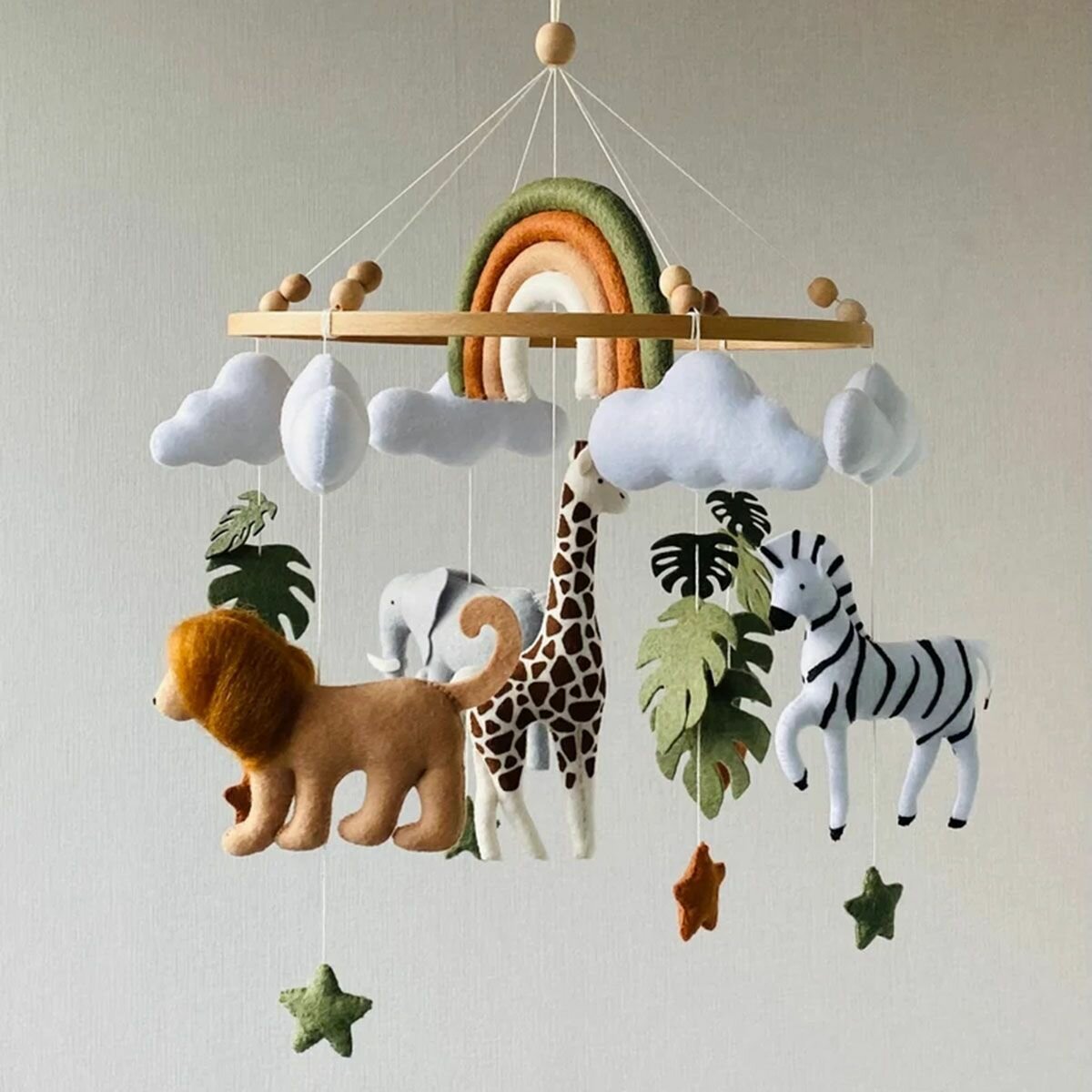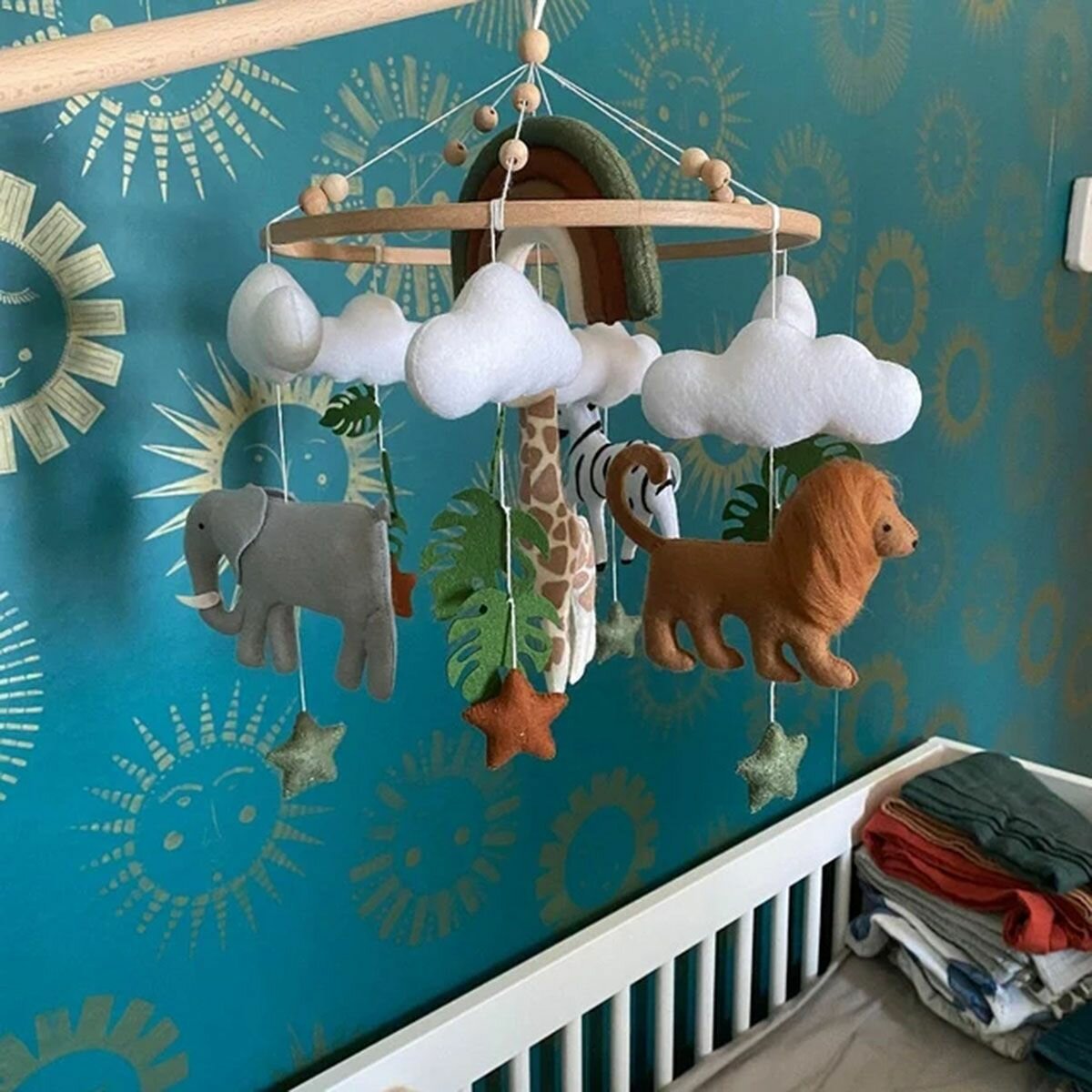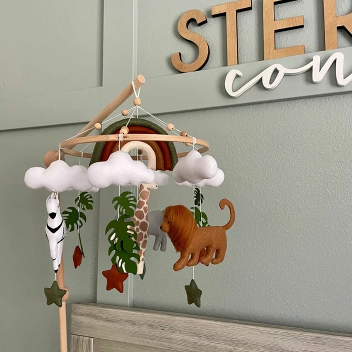 Мобиль на кроватку музыкальный для новорожденных и кронштейн из дерева-3