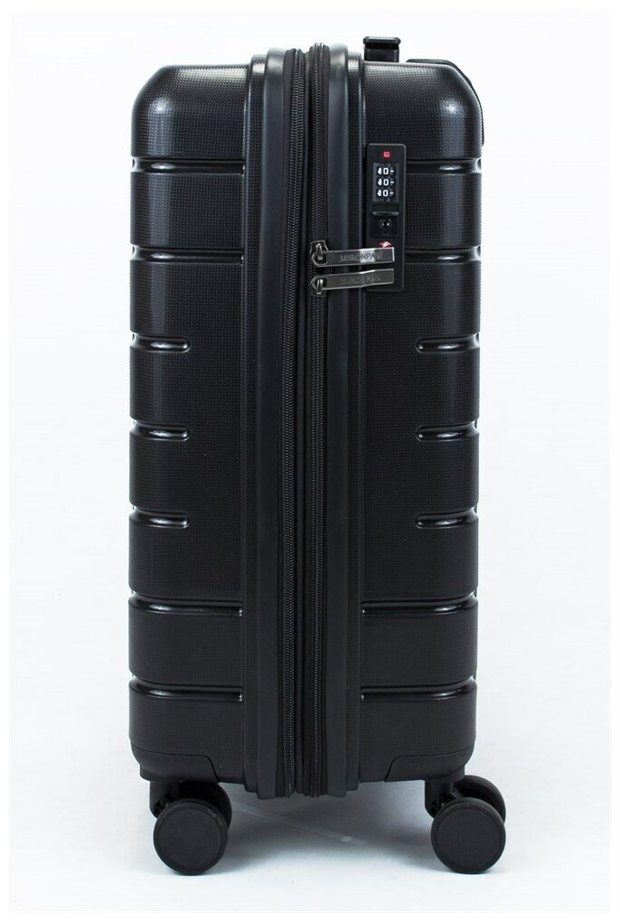 Чемодан Sweetbags маленький (ручная кладь) из полипропилена (ромб. полосы) с расширением на 4-х колесах с TSA замком черный информация: