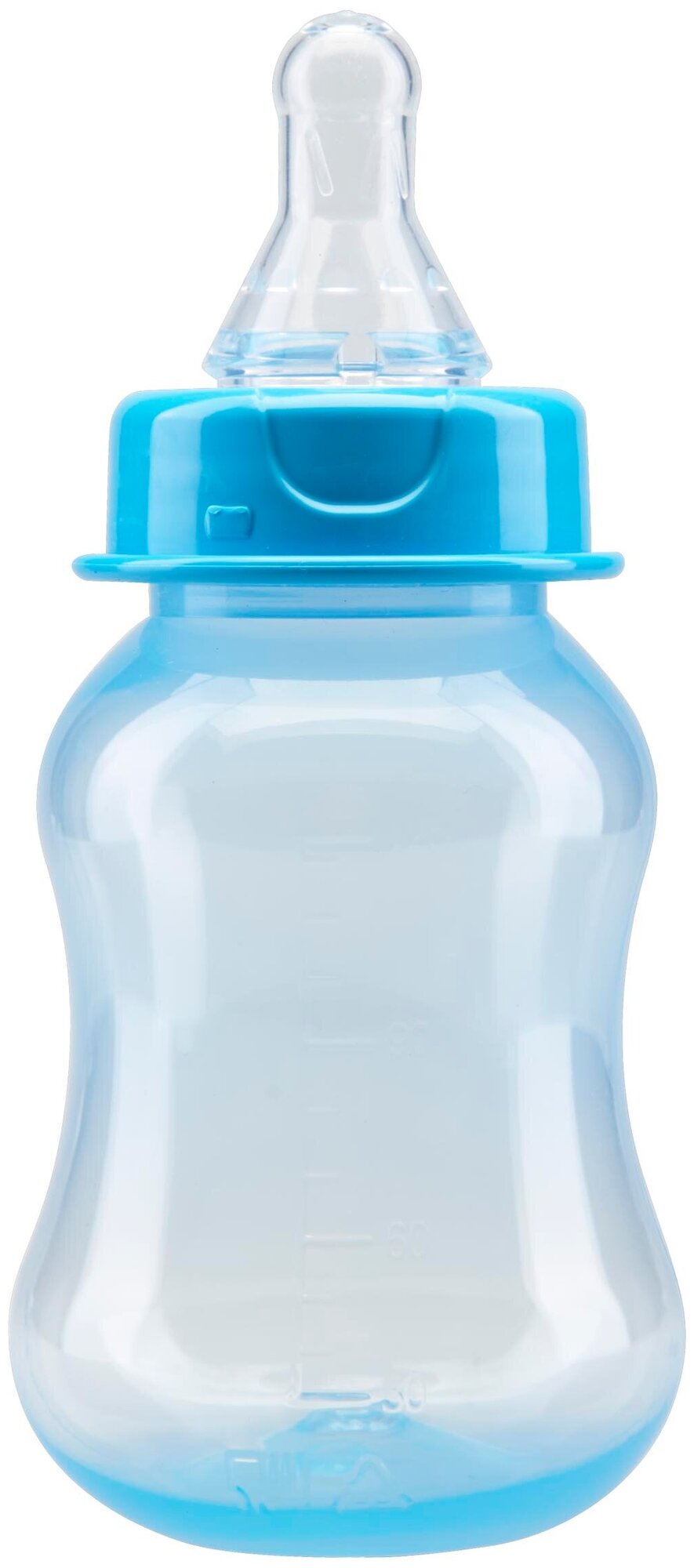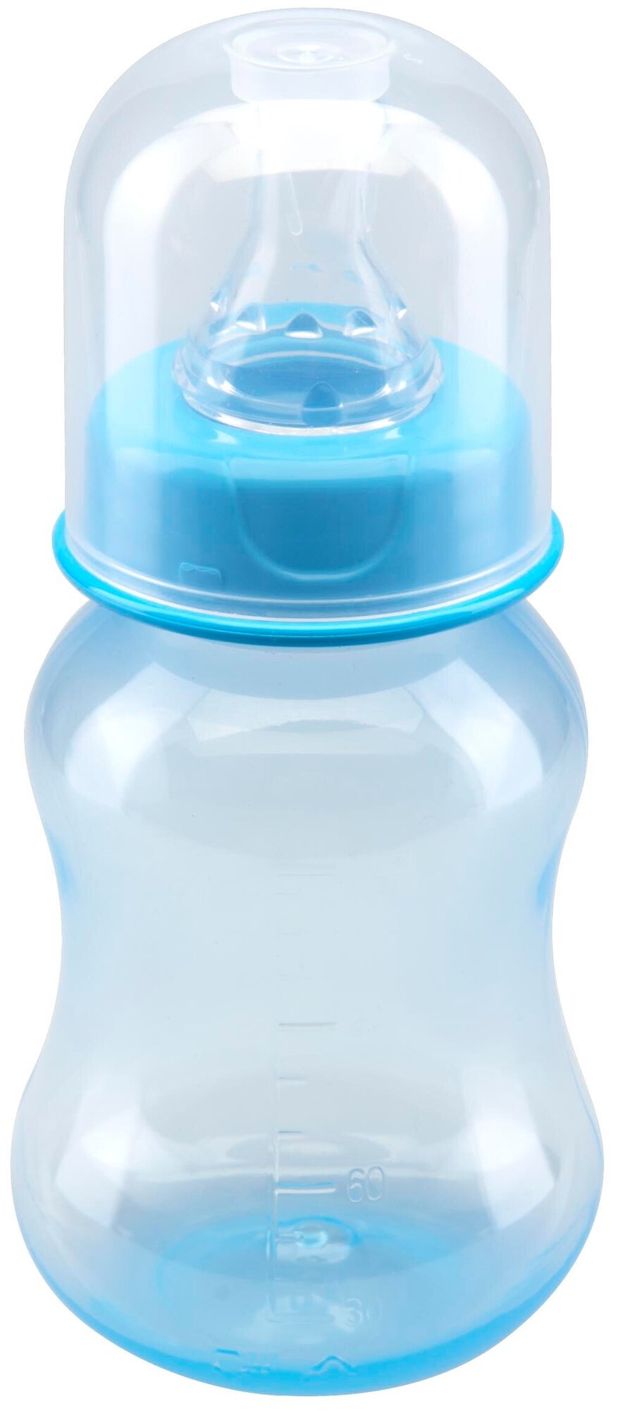 Курносики Бутылочка для кормления приталенная с силиконовой соской молочной, 125 мл., без принта, голубой информация: