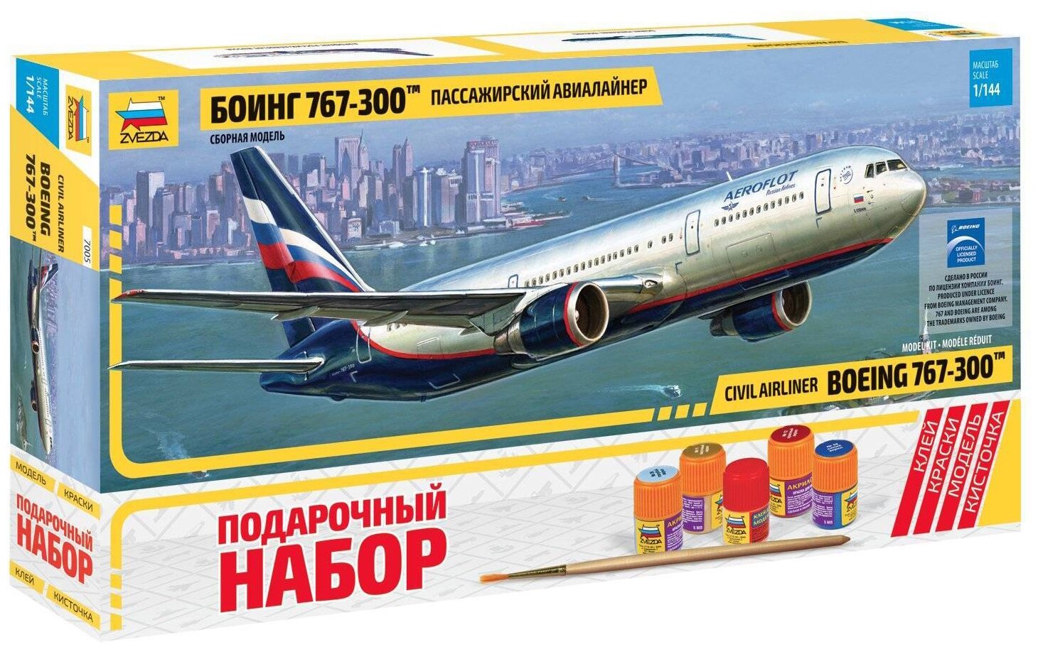 Звезда Самолет Боинг 767-300 Подарочный набор с клеем и красками Сборная модель 7005ПН с 10 лет
