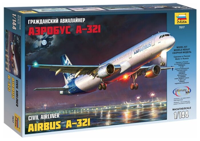 Сборная модель ZVEZDA Гражданский авиалайнер Аэробус А-321 (7017) 1:144 информация: