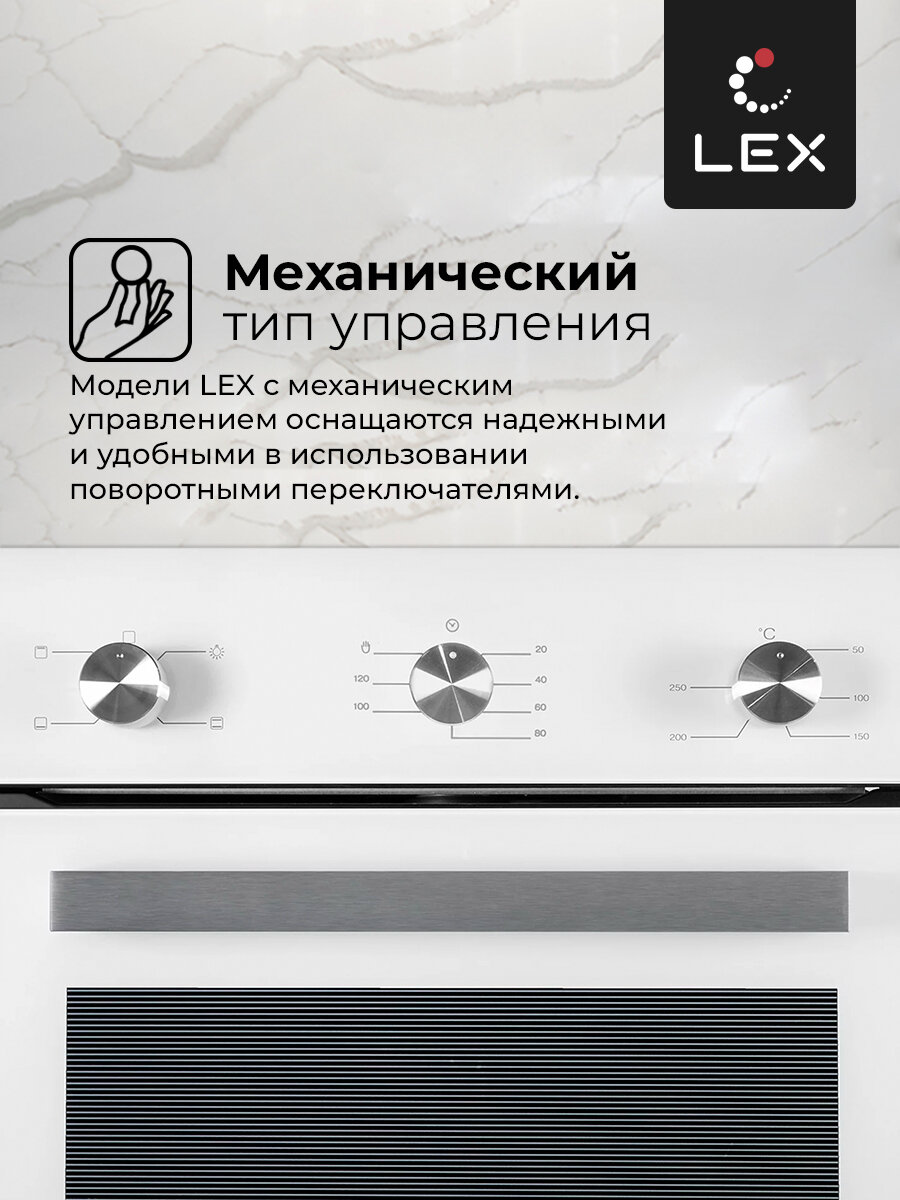 Духовой шкаф встраиваемый LEX EDM 077 C IV, 60 см, с конвекцией, механические ручки, объем 60 л, аналоговый таймер, телескопические направляющие.