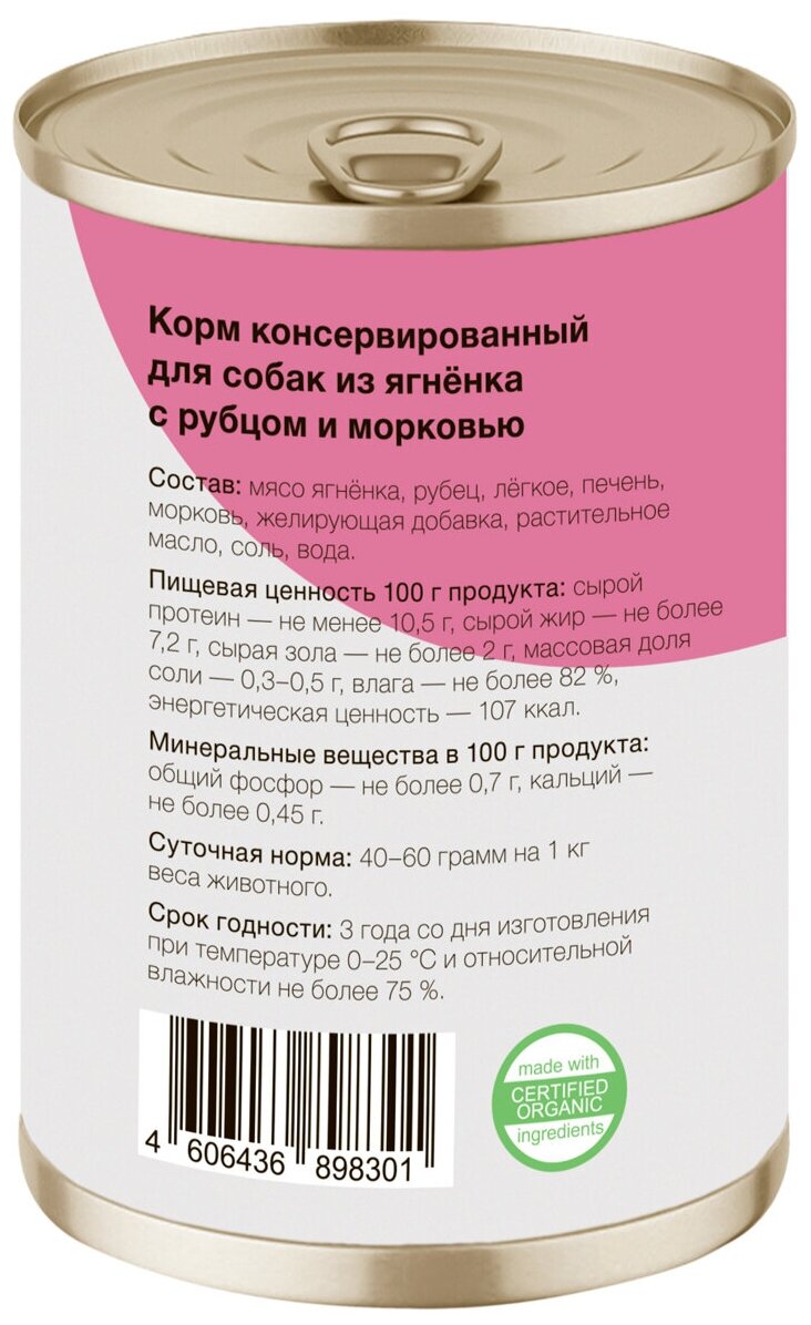 Organix консервы Консервы для собак Ягненок с рубцом и морковью 22ел16, 0,4 кг информация: