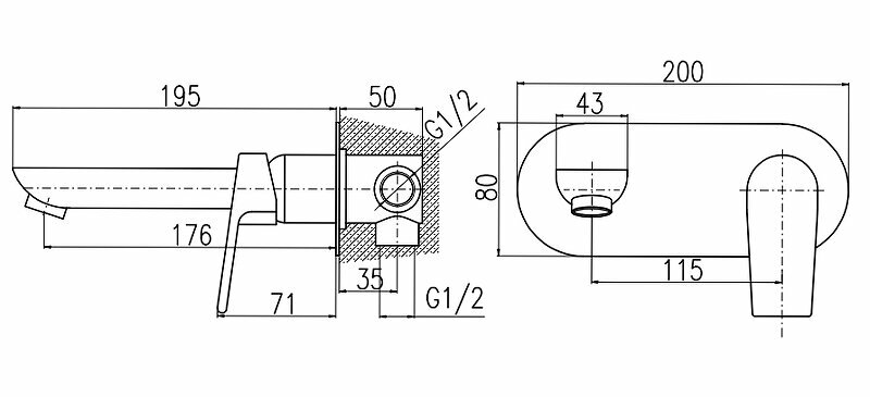 Смеситель на раковину настенный Эверест B46-350 с круглым поворотным изливом, кран-буксы 1/2", хром