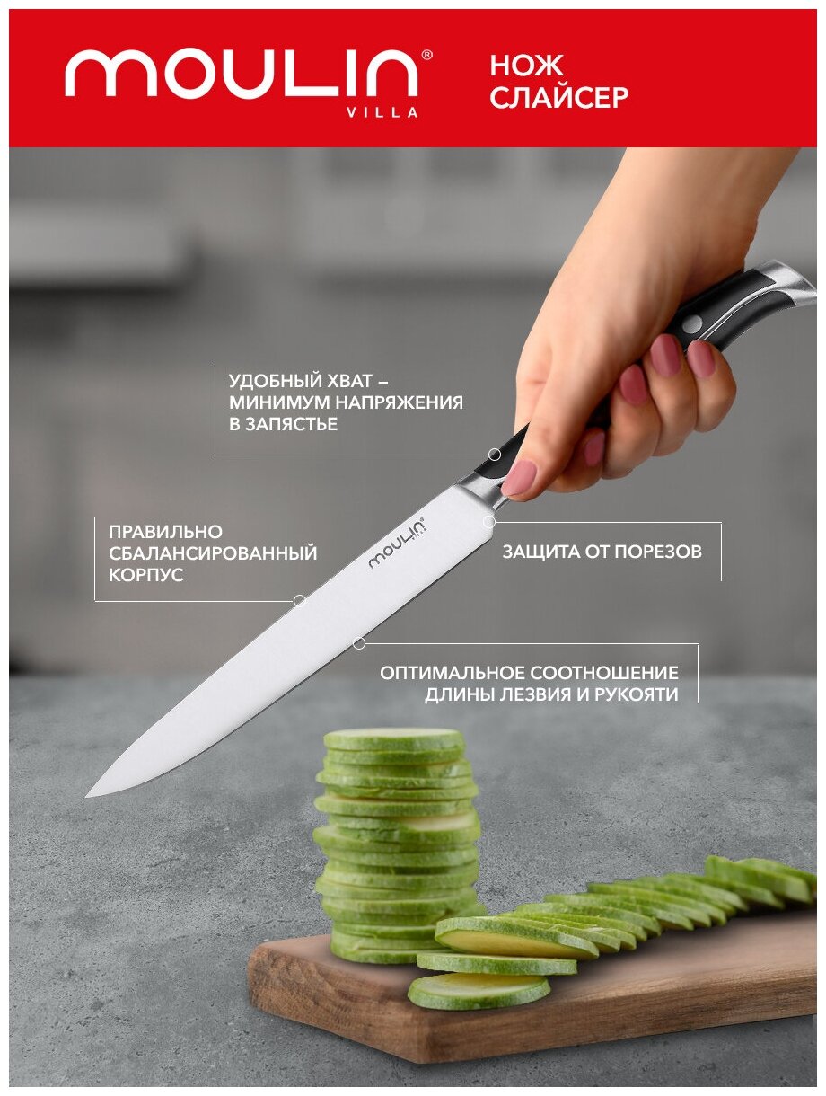 Hож слайсер 20 см / нож из нержавеющей стали / кухонный нож / стальной нож