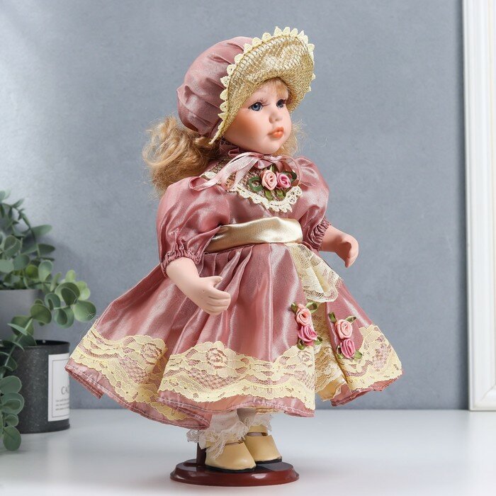 10 цен на Кукла коллекционная керамика "Ася в розовом платье и чепчике" 30 см , 1 шт.