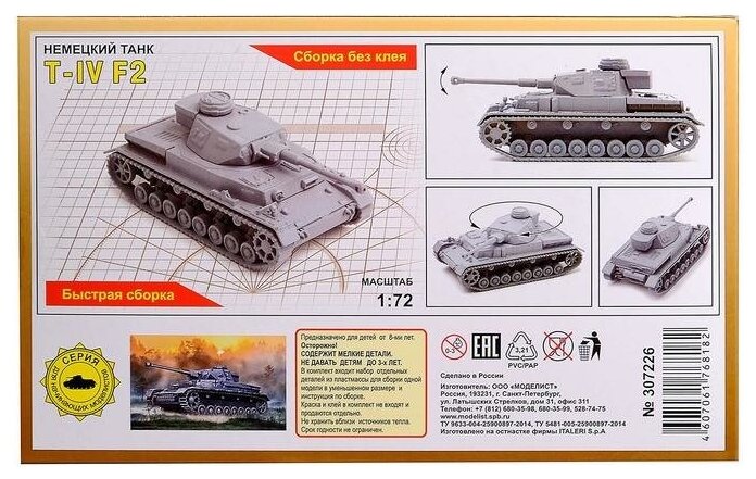 Сборная модель ТероПром 3652613 «Немеций танк Т-IV F2» (1:72) информация: