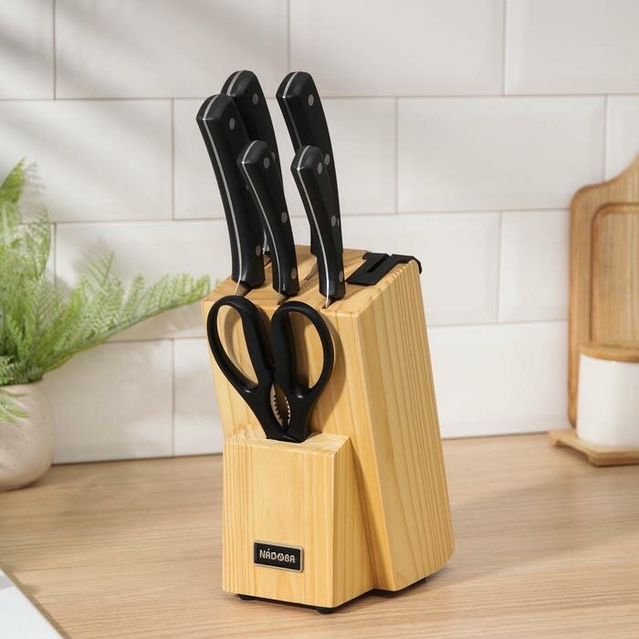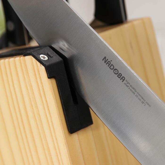 Отзывы на NÁDOBA Набор кухонных ножей HELGA, 5 шт: лезвие 9 см, 12,5 см, 17,5 см, 20 см, 20 см, универсальный блок с ножеточкой