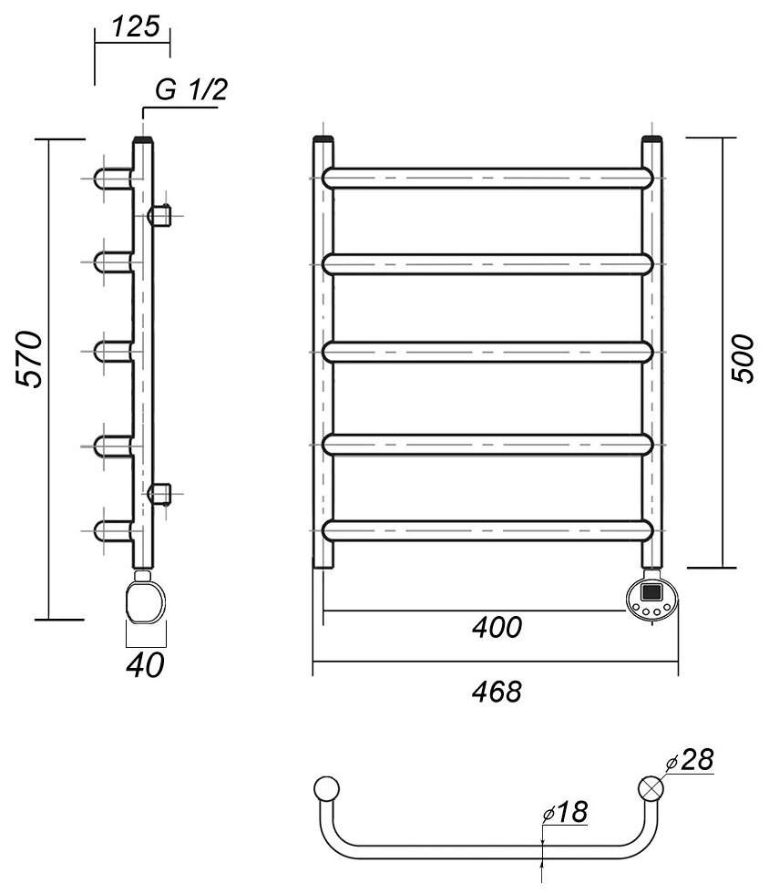 | Дополнительная информация | Полотенцесушитель с ТЭНом в сборе 1 шт., Стойка крепления 4 шт., Кран Маевского - 1 шт. Заглушка - 1 шт. Паспорт/инструкция |