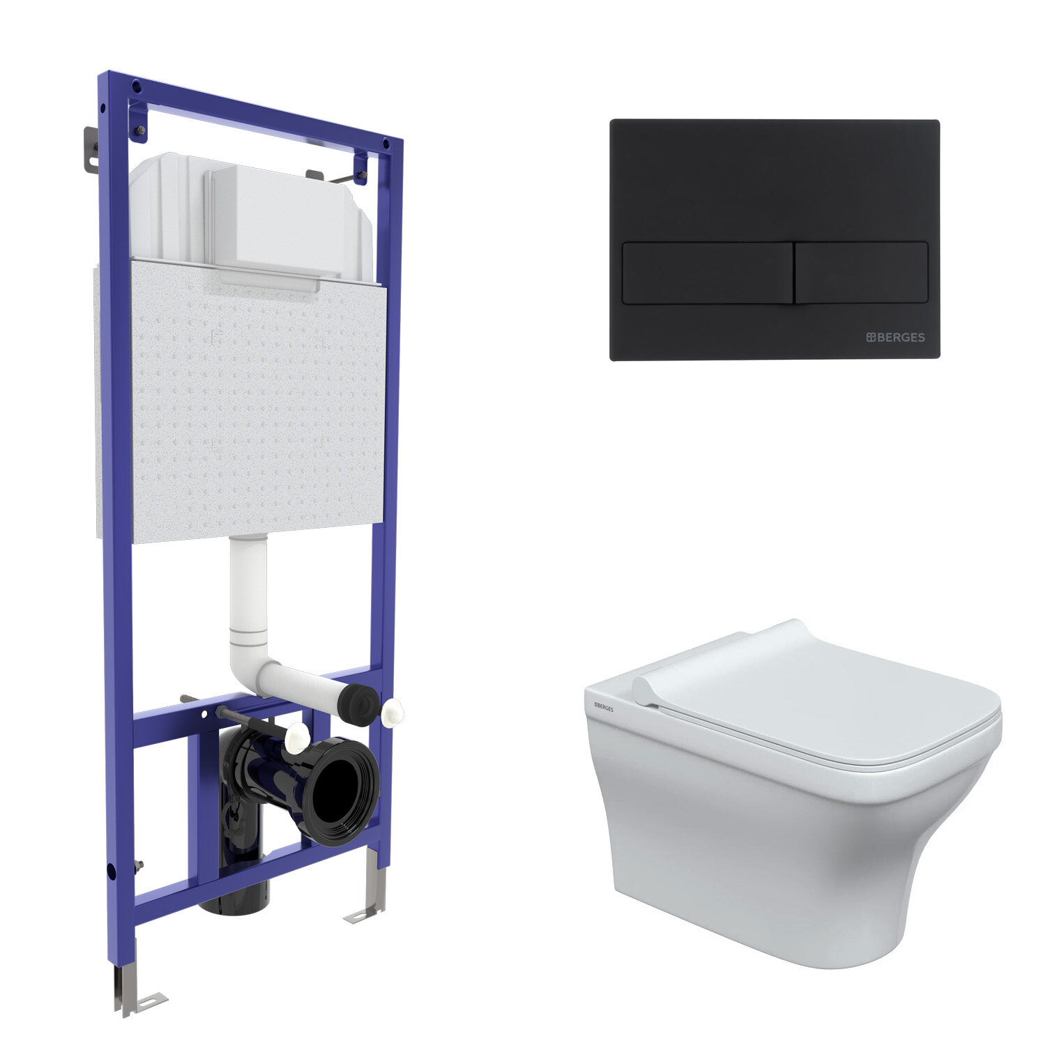 Отзывы на Комплект BERGES: инсталляция NOVUM кнопка L5 черная SoftTouch, унитаз Strati Rimless, сидение дюропласт Strati Slim SO