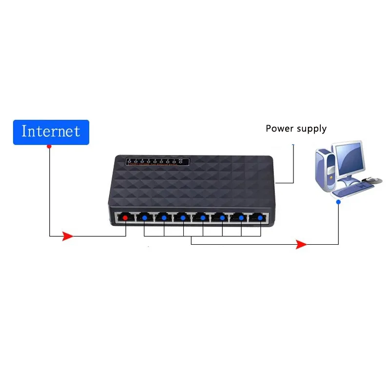 10 цен на Неуправляемый коммутатор (делитель, свитч) на 8 портов, белый, 100 Мбит/сек