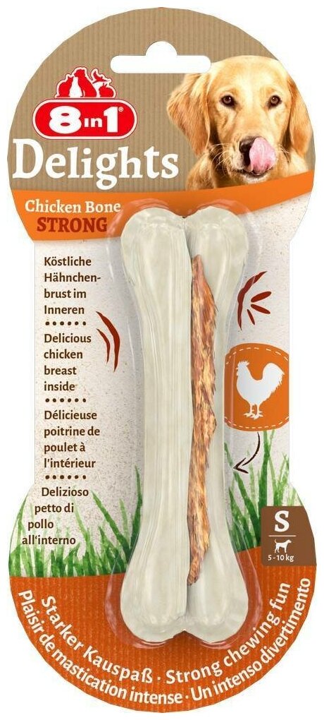 Лакомство 8in1 delights strong S прессованная косточка с куриным мясом 11см информация: