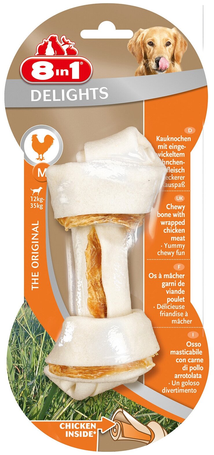 8in1 DELIGHTS M косточка с куриным мясом для собак средних и крупных пород, 14.5 см информация: