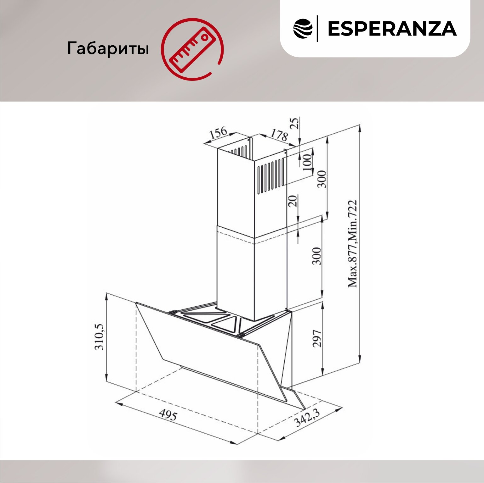 Наклонная вытяжка 50 см ESPERANZA RHA50G06 W информация: