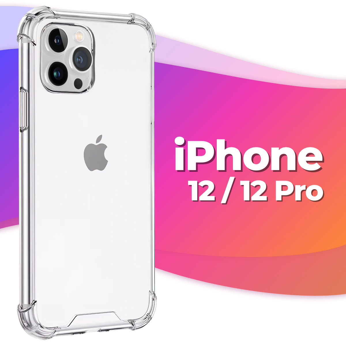 Противоударный силиконовый чехол Armor для телефона Apple iPhone 12 и 12 Pro / Чехол для смартфона Эпл Айфон 12 и 12 Про (Прозрачный) информация:
