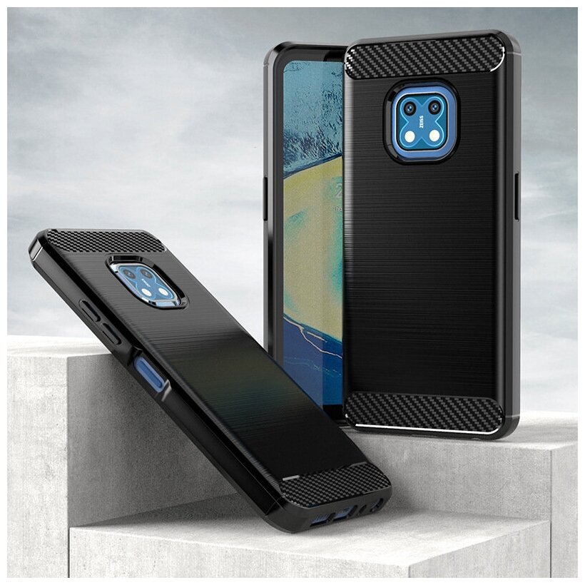 Чехол панель-бампер MyPads для Nokia XR20 из прочного силикона с матовой отделкой «под карбон» черная информация: