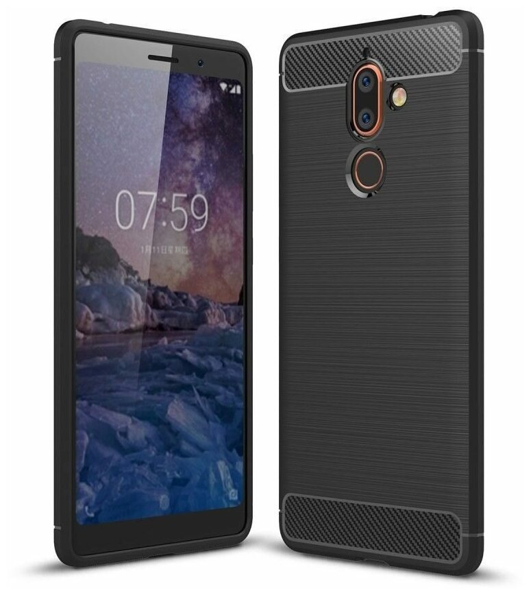 10 цен на Чехол-накладка Carbon Fibre для Nokia 7 Plus (черный)