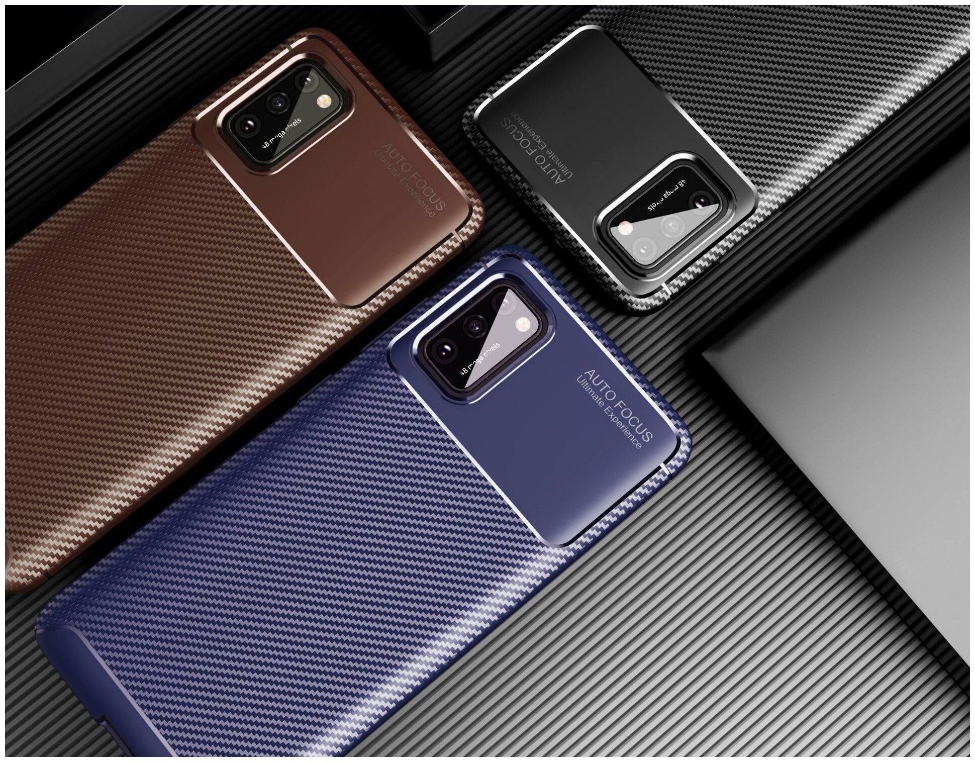 10 цен на Чехол панель-бампер MyPads для Samsung Galaxy A21s SM-A217F (2020) из прочного силикона с матовой отделкой «под карбон» черная