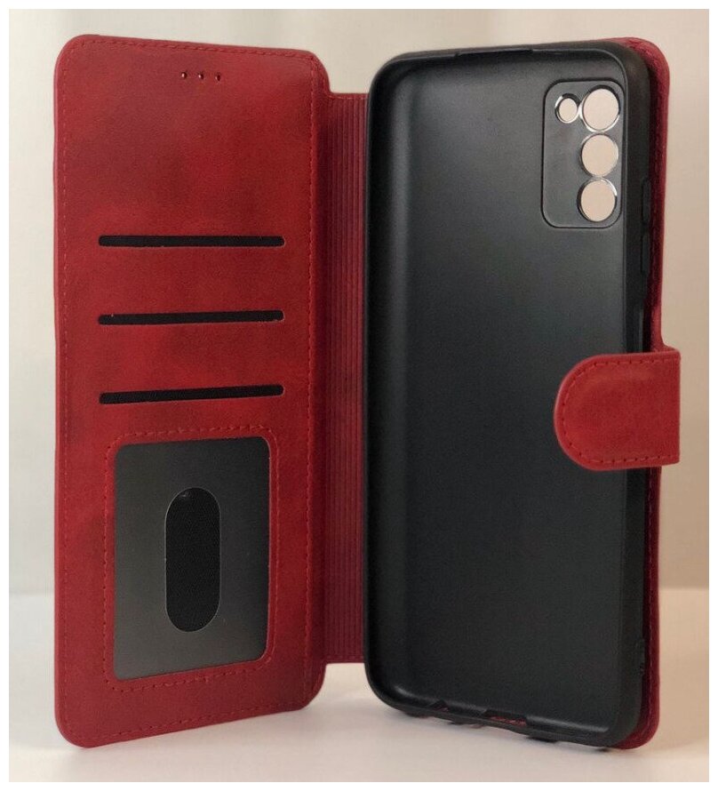 Отзывы на Чехол книжка для Samsung Galaxy A03s A037 кожаный красный с магнитной застежкой