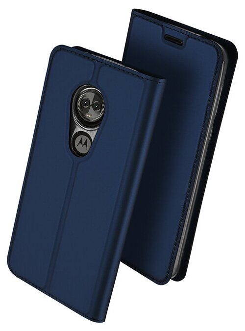 10 цен на Чехол-книжка Чехол.ру для Motorola Moto E5 Plus водоотталкивающий с мульти-подставкой на жёсткой металлической основе синий
