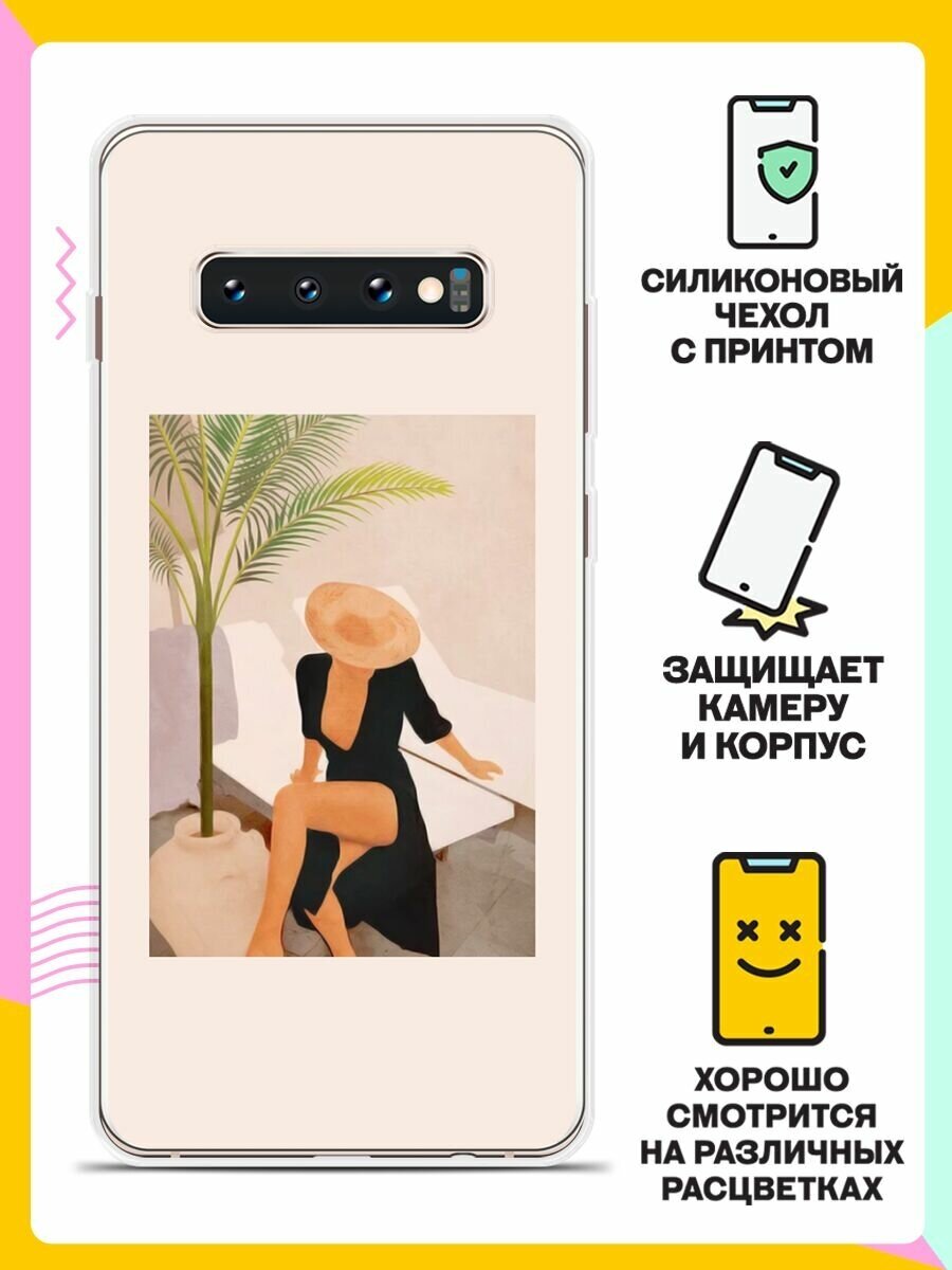 Отзывы на Силиконовый чехол на Samsung Galaxy S10+ Девушка в черном / для Самсунг Галакси С10 Плюс
