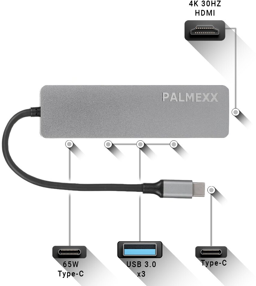 10 цен на Хаб Palmexx USB-C to HDMI+3*USB3.0+USBC /HUB-074