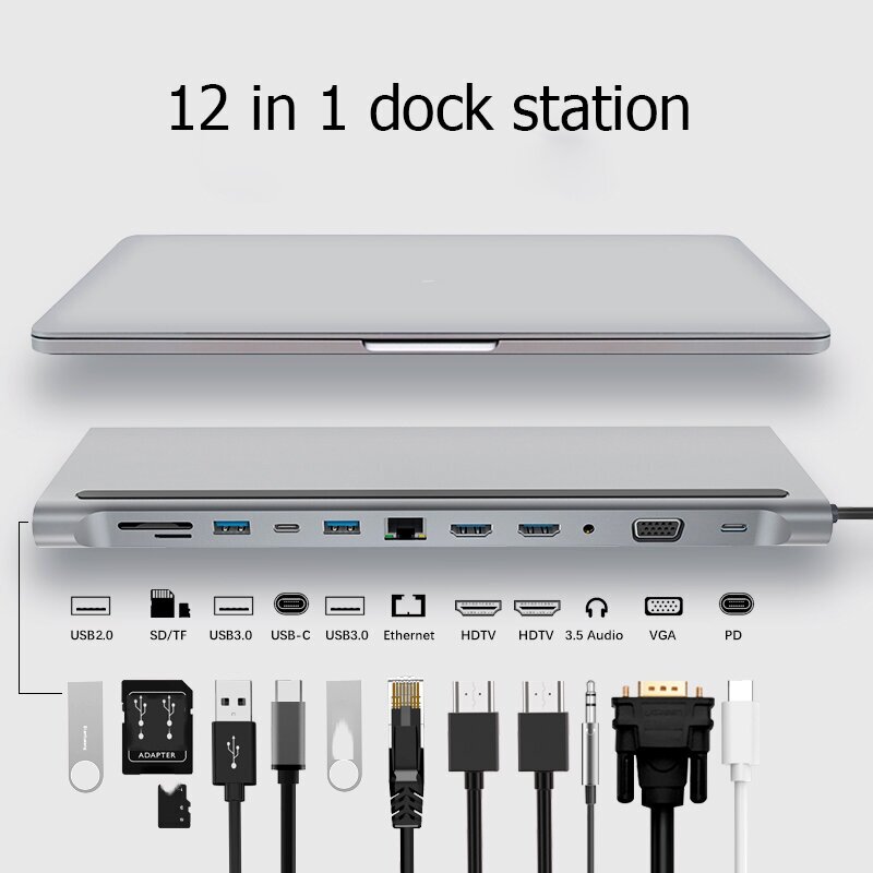 10 цен на Концентратор USB-HUB c HDMI Type-C 12 в 1 для MacBook