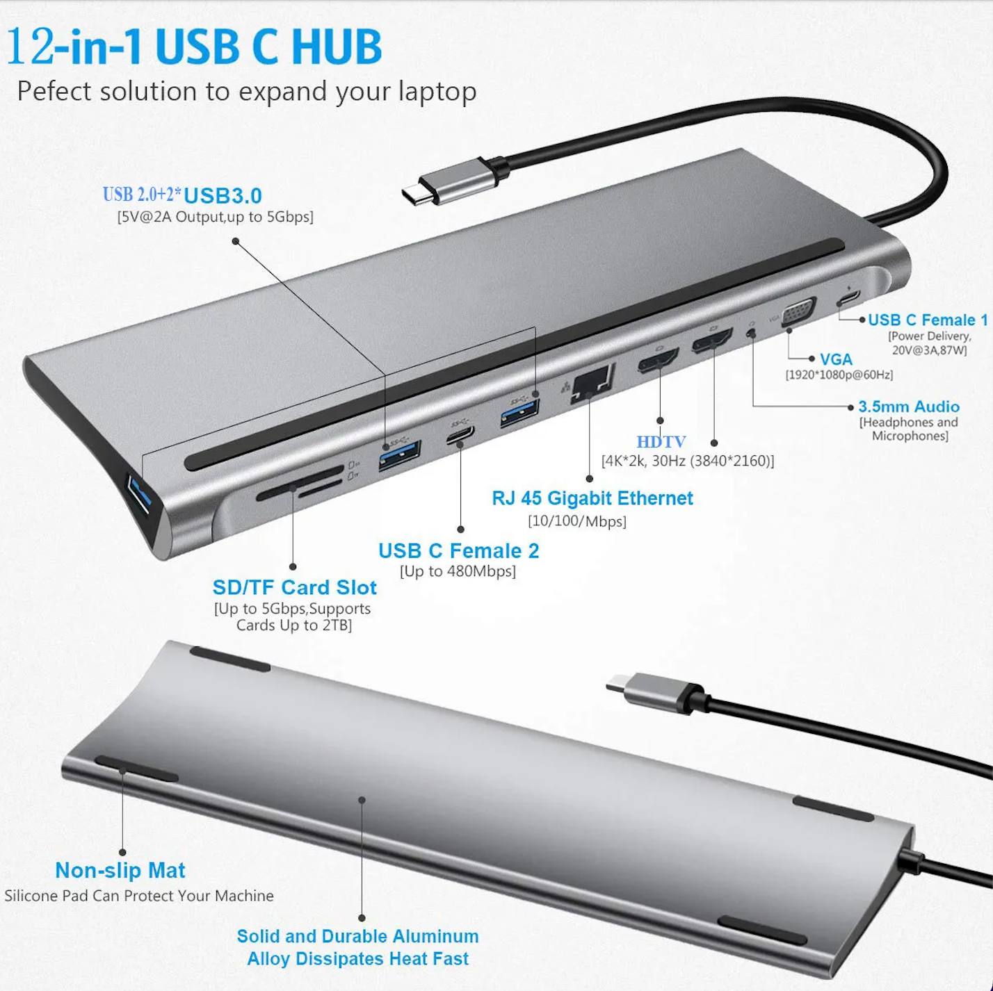 Концентратор USB-HUB c HDMI Type-C 12 в 1 для MacBook информация: