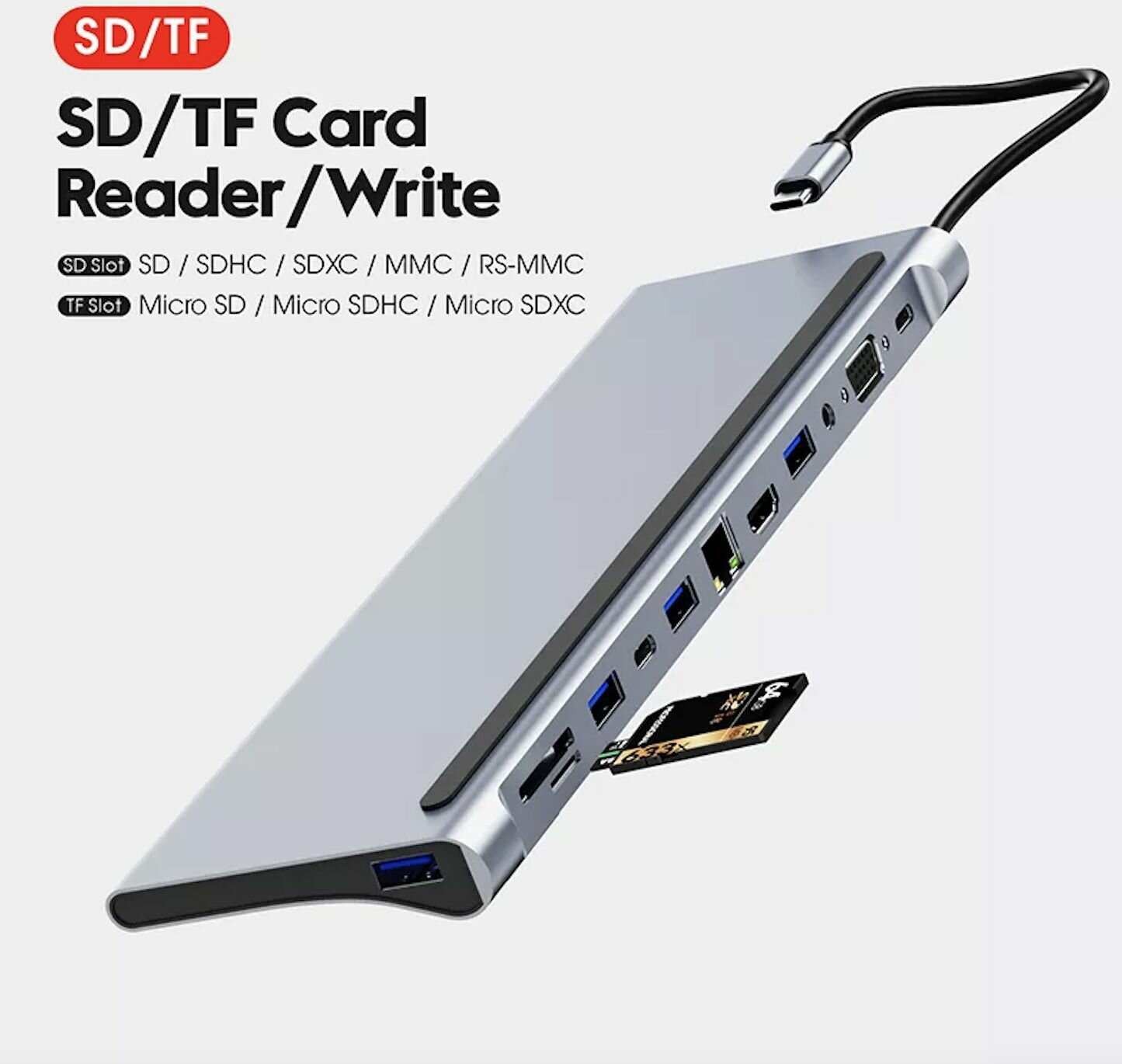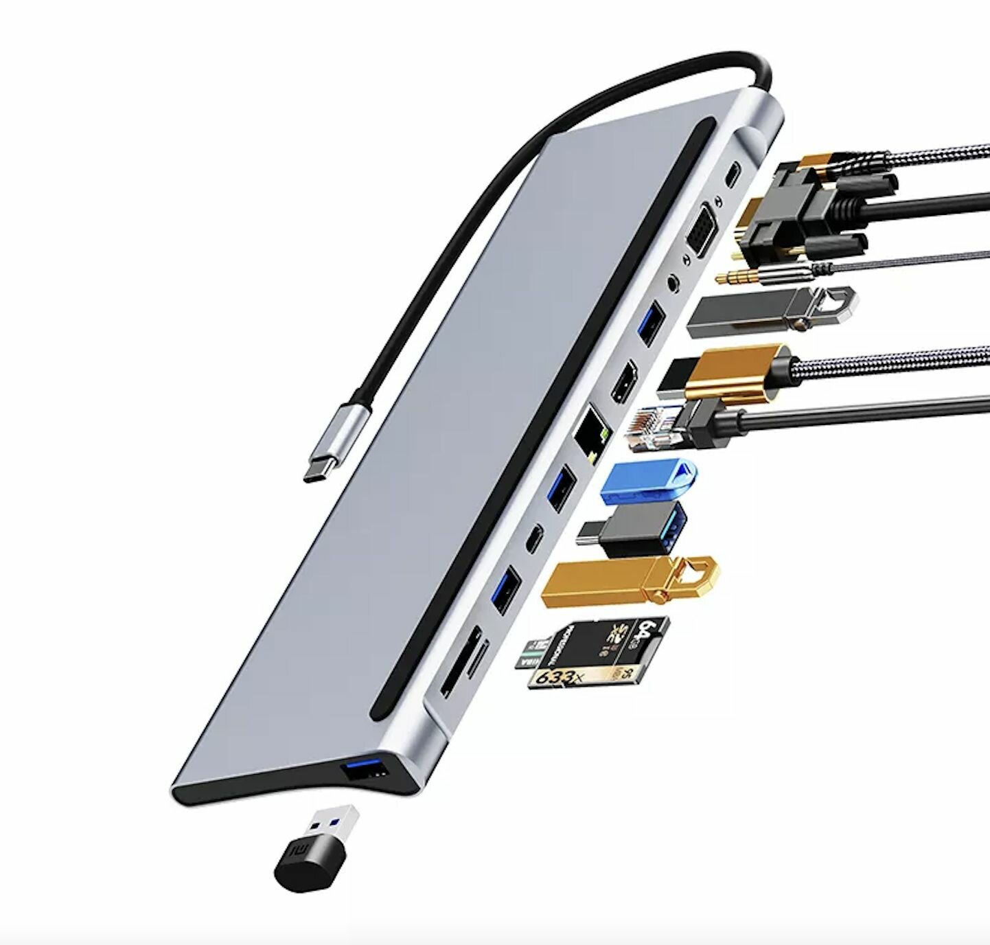 Отзывы на Док станция/usb хаб 12 в 1 Type C, HDMI, RJ 45, USB 3.0/2.0, audio 3.5, TF/SD/micro SD card, PD charging, grey