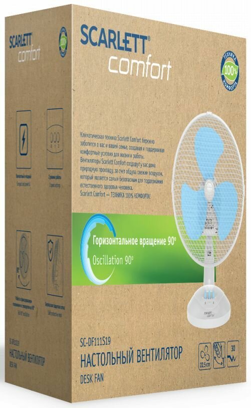 Отзывы на Вентилятор настольный Scarlett SC-DF111S19 30Вт скоростей:2 белый/голубой