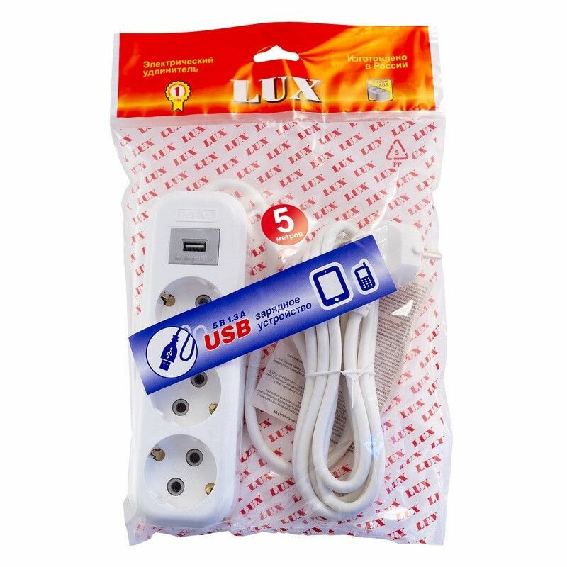 Отзывы на Удлинитель LUX У3-Е-USB-05 3-мест с з/к 250В 16А, USB 5В 1.3А, 5м, белый