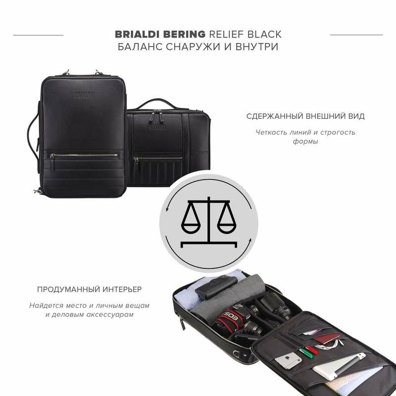 10 цен на Кожаный рюкзак-трансформер BRIALDI Bering (Беринг) relief black