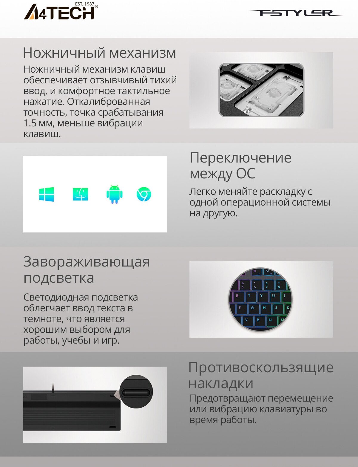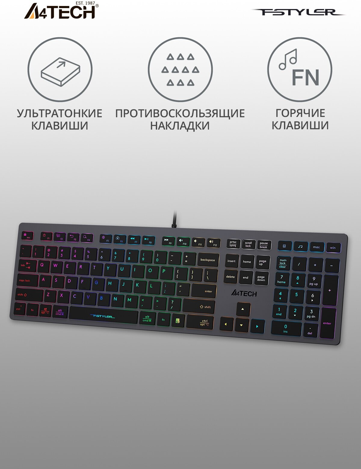 Клавиатура A4Tech Fstyler FX60, USB, серый