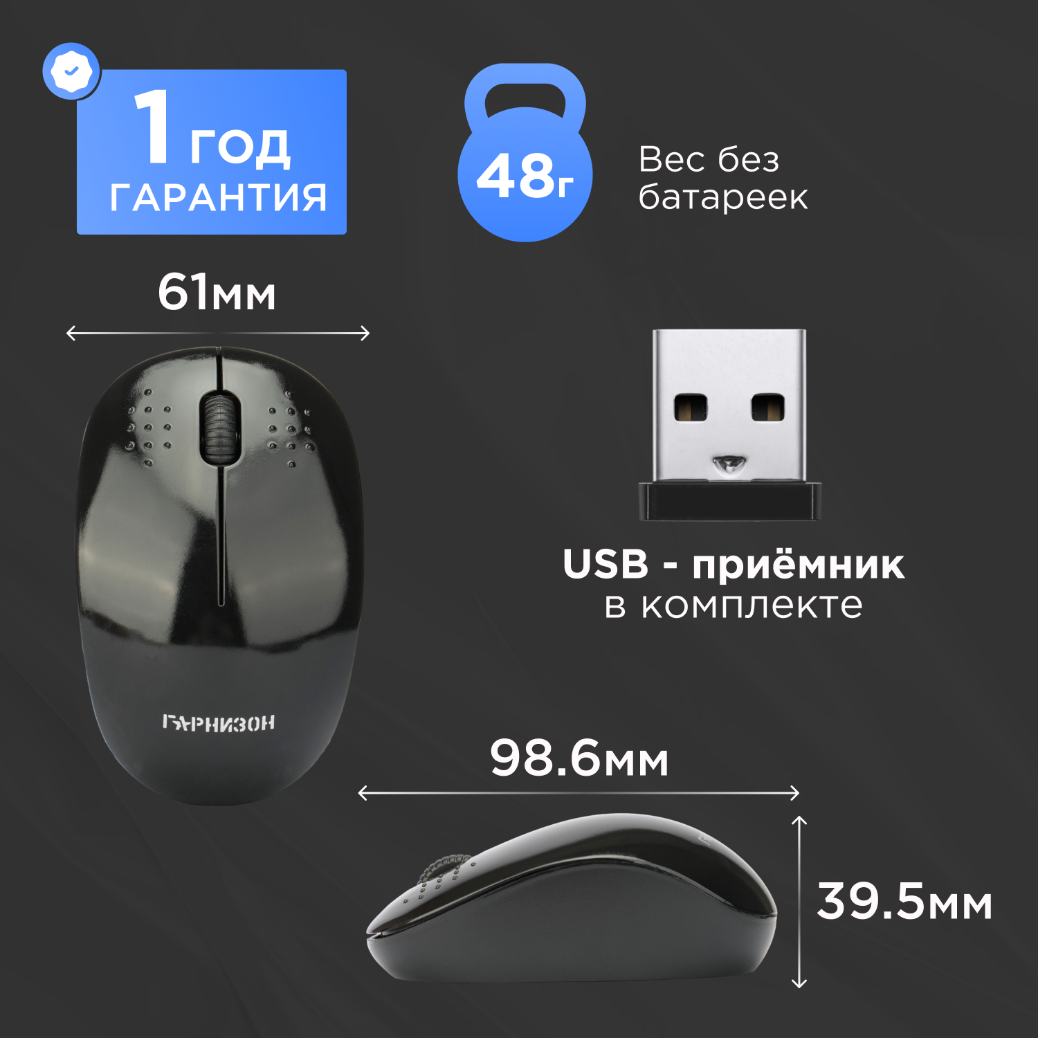 Мышь беспроводная Гарнизон GMW-440, черный, 1000 DPI, 2 кн.+ колесо-кнопка информация:
