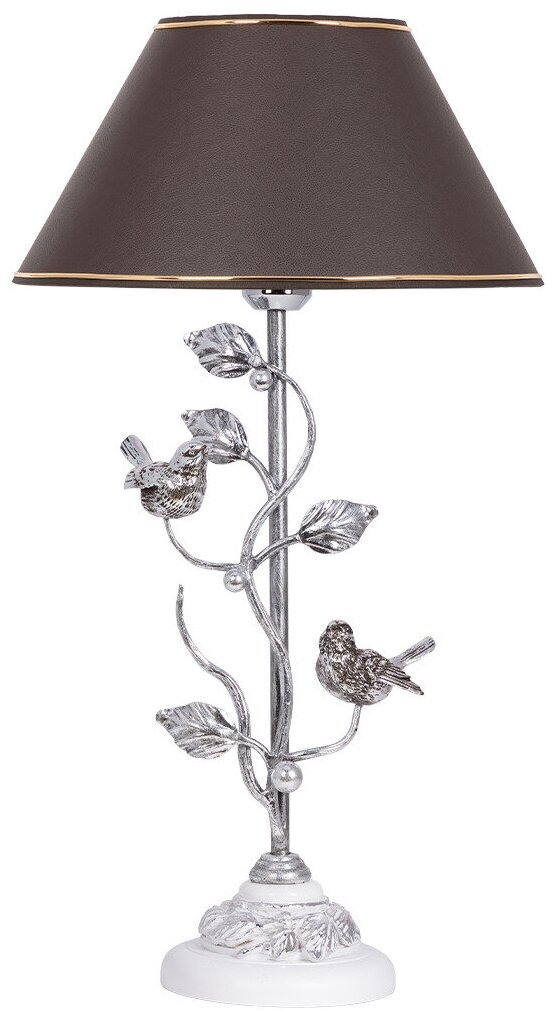Настольная лампа BOGACHO Терра Spring белая с темно-коричневым абажуром из искусственной кожи информация: