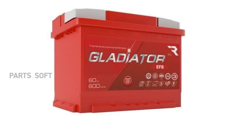 Аккумулятор GLADIATOR EFB 60 Ah, 600 A, 242x175x190 прям. GEF6010 информация:
