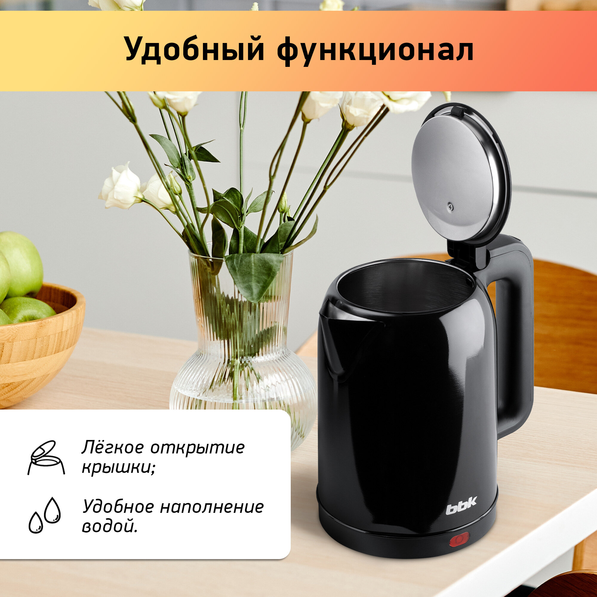 Чайник электрический с двойными стенками BBK EK1811 черный, объем 1.7 л, мощность 1850-2200Вт