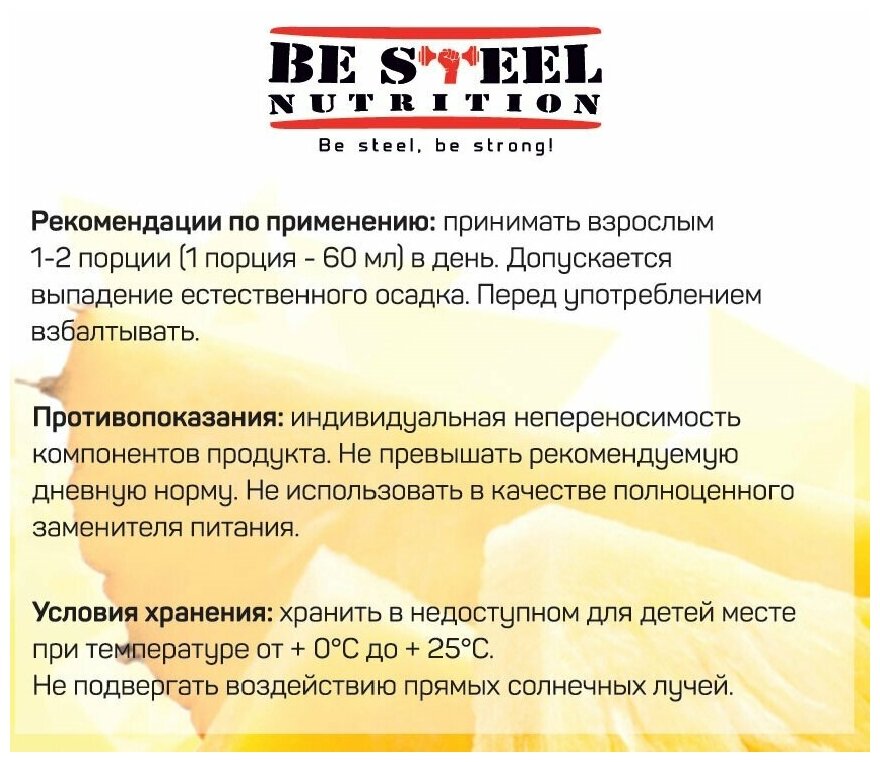 Жиросжигатель L-карнитин Be Steel Nutrition L-Carnitine 3000мг Shot 12шот*60мл (ананас)