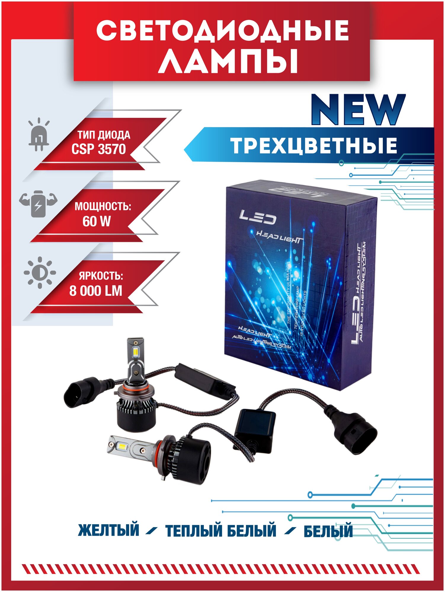 Лампы головного света TF8 (fan design) 3 colors 8000LM-3000/4700/5500K-60W/HB4 (9006) информация: