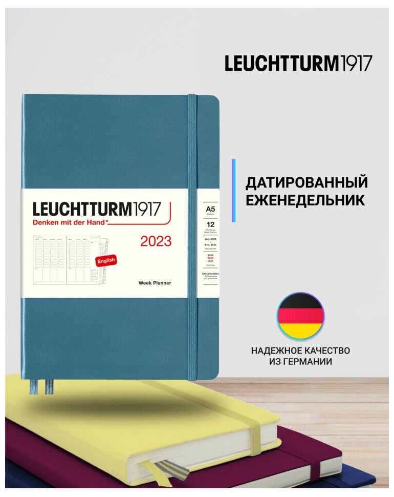 Еженедельник датированный Leuchtturm1917 Medium, 72 листа, А5, синий камень информация: