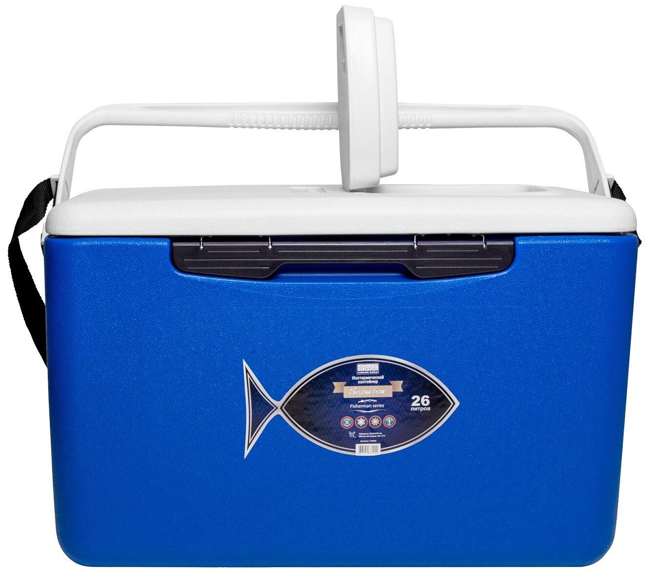 Контейнер изотермический Camping World Fisherman 26 л с люком и лотком (термоизоляция корпуса и крышки, наплечный ремень, время сохранения температуры до 48 часов с использованием ак/холода)