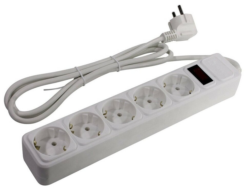 Сетевой фильтр 5bites SP5W-218 5S, 5 розеток, 1.8 м, 10 А, 3х0.75 мм2, с выкл, белый