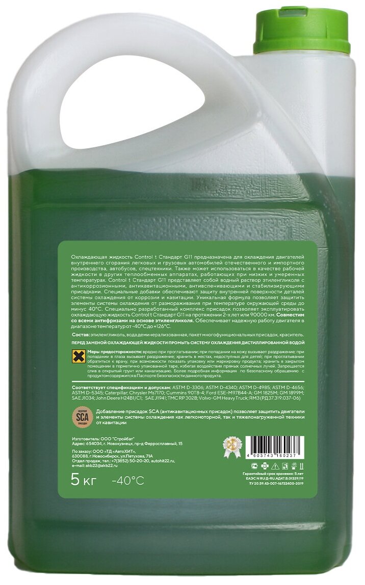 Антифриз Control T G11 зелёный 5кг с лейкой информация: