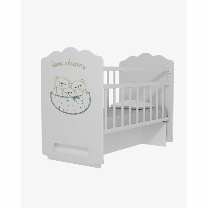 ВДК Кровать детская Love Sleeping колесо-качалка с маятником (белый) (1200х600) информация: